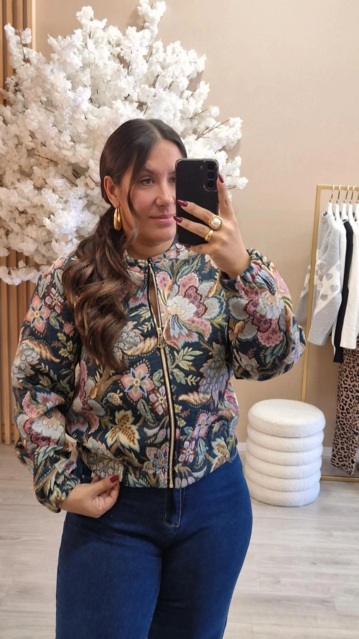 Casaco com padrão forrado. Tamanho único, veste S M L.