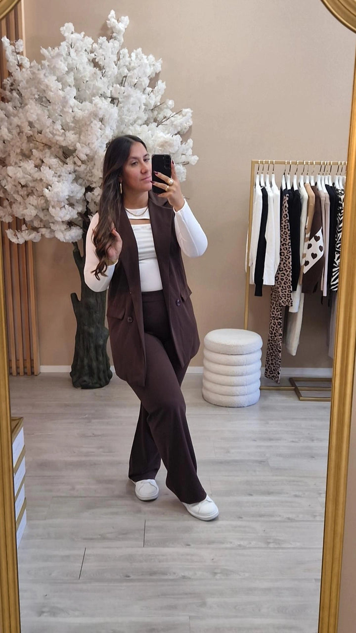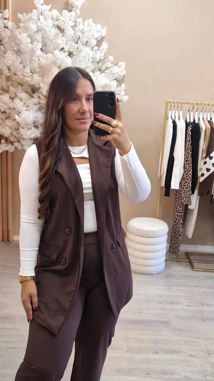 Conjunto colete e calça.