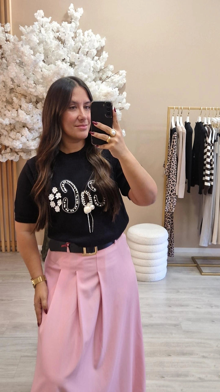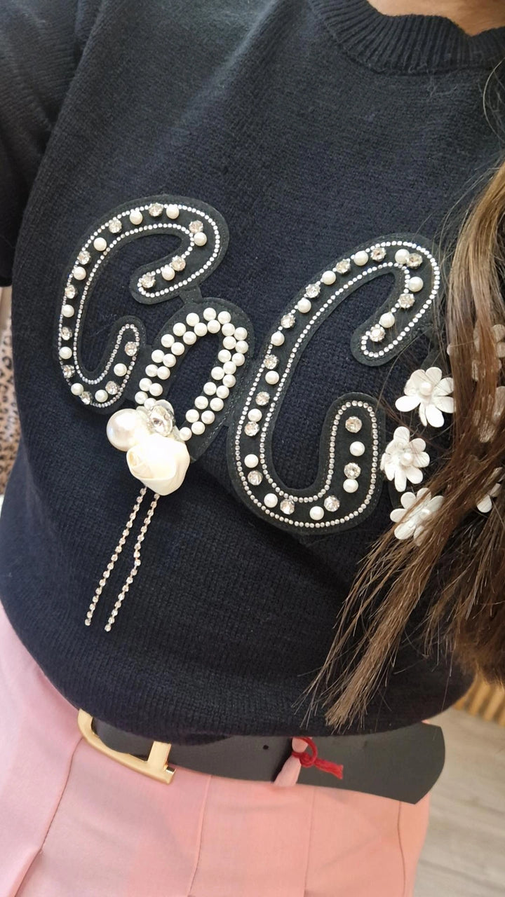 Malha com pormenores brilhantes. Tamanho único, veste S M L.