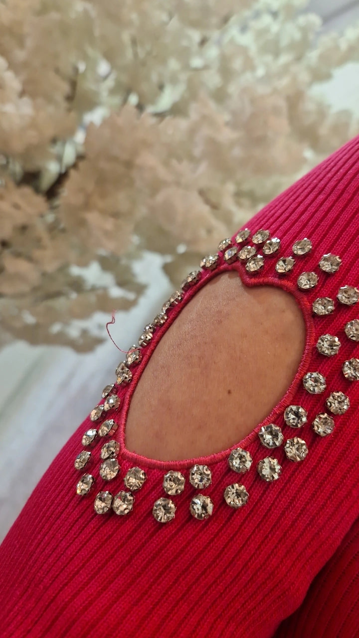 Malha com elastano. Pormenor coração na manga c/ brilho. Tamanho único, veste S M L.