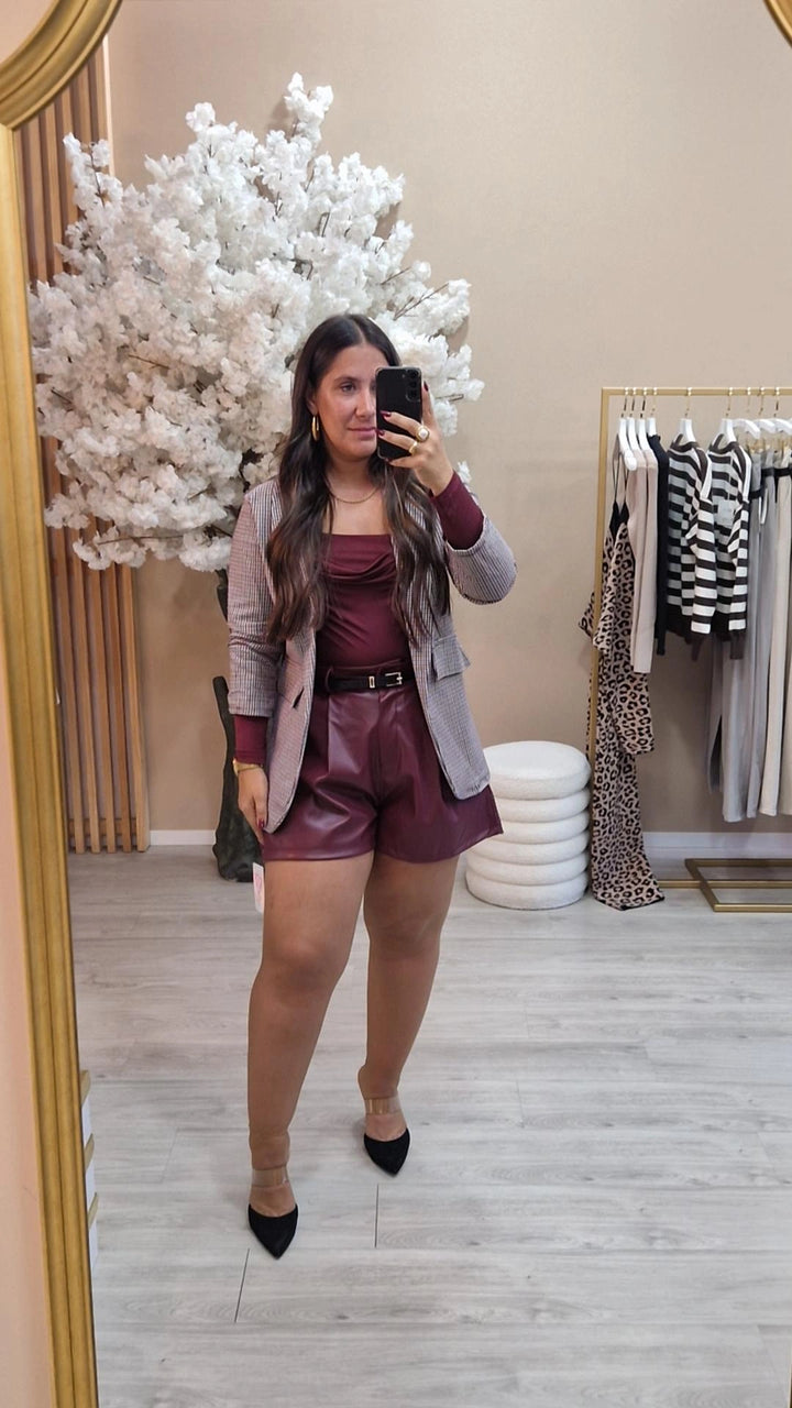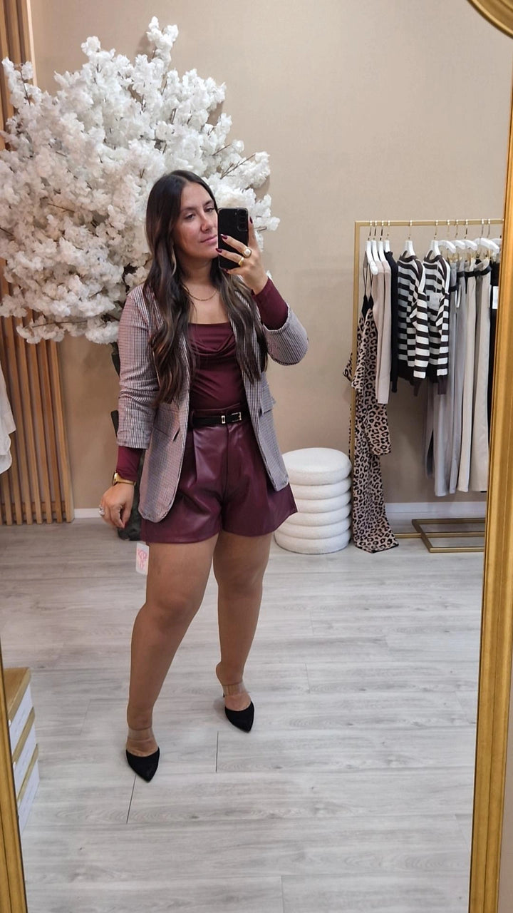 Blazer xadrez com manga repuxada. Tecido com elastano. Tamanho único, veste S M L.